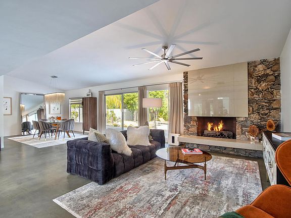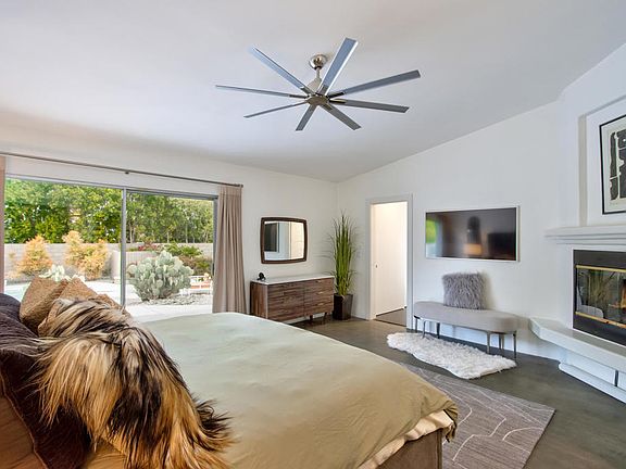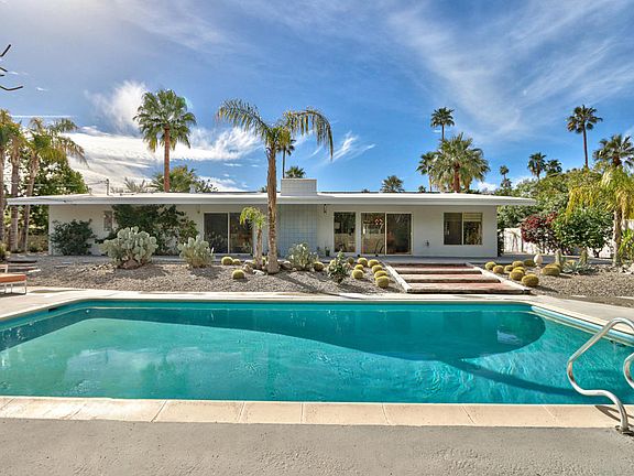 Spectacular Mid Century Modern home built in 1962 by famed architect Charles du Bois. This home features 3 bedrooms, 2 bathrooms in 2,041 sq. ft (that does not include the garage of 300 sq. ft.) on an almost 14,000 sq. ft. lot. This home is move in ready. It comes fully furnished and includes all the Samsung ''The Frame'' t.v.'s. All top of the line appliances are approximately a year old. Theres a steam shower in the bathroom. The new high insulation, foam roof was done in 2023. Gas stove, gas fireplace, and wood burning fireplace in the master bedroom. The garage has already been wired with an EV charger. Plans are available for an outdoor Mid Century Modern ADU and pool house. The backyard features a sprawling pool, dwarf fruit trees, grapevines, and spectacular mountain views.This home, besides being located at the end of a private cul de sac, is also located in the heart of South Palm Desert. A short distance away from El Paseo. El Paseo features great restaurants and cafes, shopping, luxury retail stores, coffee shops, and so much more! This home is truly meticulous and you do not want to miss it! Call to schedule your showing today.