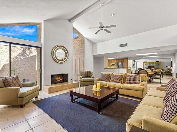 Beautifully maintained, South facing 3 bedroom, 2 bath Fairway Estate villa, is situated on a greenbelt with views of the San Jacinto Mountains and close to, but not on top of, the community pool. The spacious open floor plan allows for great entertaining. The Kitchen features granite tile countertops, newer refrigerator, dishwasher and washing machine. The atrium, separated by floor-to-ceiling windows brings natural lighting into the spacious living room, dining room, and bonus room. The primary bedroom faces south and the attached bath has a walk-in shower, raised vanities with double sinks and granite tile, and his and her closets. The guest room opens to a private patio and the Jack n Jill bath features double sinks and a large jacuzzi tub for soaking after an active day of hiking, biking, tennis, or golf. The built-in office/media room also has a convertible sofa which allows for overflow guests. Ironwood Country Club is a private club with different membership opportunities. Located just minutes to the Living Desert and El Paseo where you can enjoy El Fresco dining, casual and couture shopping, or meandering through world-class art galleries. The Villa comes furnished per the inventory list and a golf cart that can be purchased outside of escrow. So what are you waiting for, isn't it time to come and start enjoying the lifestyle that you have worked toward all your life? Call me to set an appointment to preview this beautiful home in Ironwood Country Club