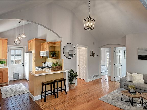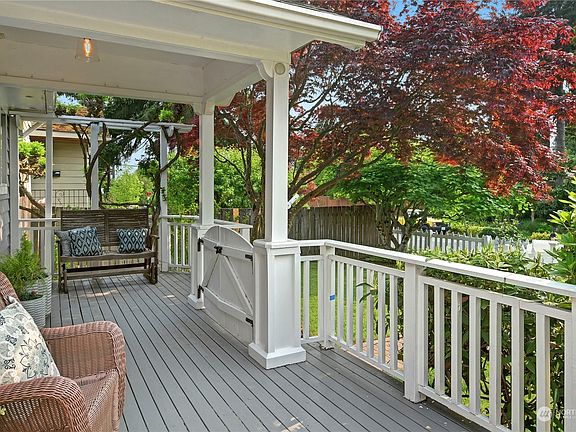 Charming 1928 Craftsman home on a quiet street. Vaulted ceilings, gleaming hardwood floors, freestanding wood burning stove and elegant plantation shutters create a timeless ambiance. Sunny kitchen opens to the great room living and dining areas and also to the side deck with BBQ area. Relax on the inviting rocking chair front porch, surrounded by lush mature landscaping. Enjoy privacy in the fully fenced backyard with a gas fire pit, perfect for entertaining. Garden shed for yard storage and RV/boat parking off the alley. Detached 2-car garage with custom plans and permits ready to build a new DADU-amazing opportunity awaits!