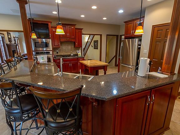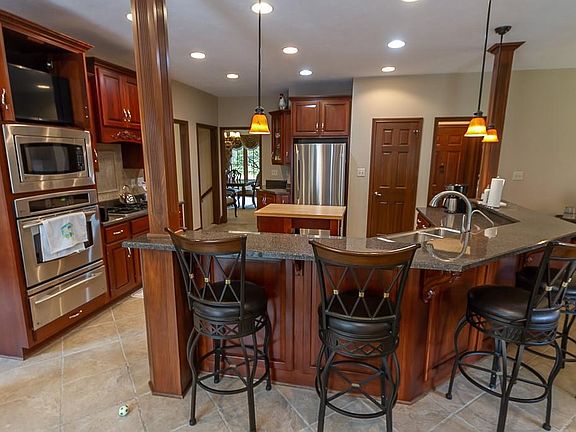 Fabulous one owner home by Kent Franklin. Great kitchen with a full compliment of stainless appliances, custom cabinets with crown molding, breakfast room and hearth room with one of three gas fireplaces. The main level also includes an office, spacious great room featuring a vaulted ceiling to the loft and the second gas fireplace, dining room, master bedroom and an office for those that work from home. The finished basement includes a family room with the third gas fireplace, fourth bedroom, full bath and a wet bar making it ideal for in law quarters. The upper level includes a loft, two additional bedrooms and the third full bath. The outdoor space includes a screened patio, main level deck and lower level open patio.