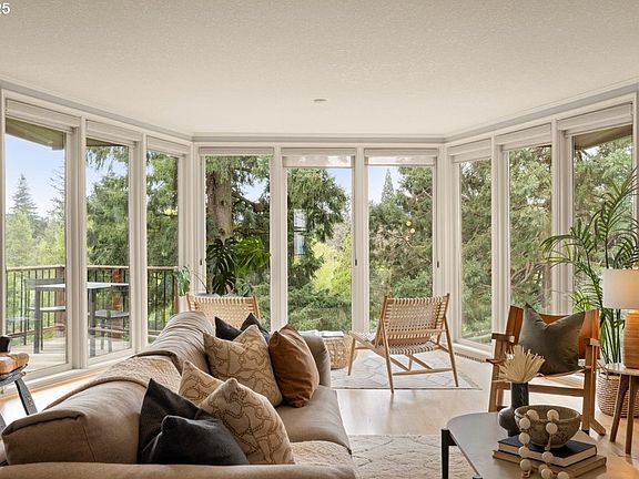 A rare opportunity to own a Portland home unlike any other. This mid-century modern daylight ranch is one of only a few houses perched on the Alameda Ridge overlooking Rose City Golf Course. Designed by renowned Pacific NW architect Richard Sundeleaf, this 1952 custom home blends timeless design, natural beauty, and modern updates.The main level includes 3 bedrooms and 2 baths, with an open layout that seamlessly integrates form, function, and incredible views. The kitchen was fully remodeled in 2021 with high-end finishes including custom cabinetry and tile, a Blue Star gas range, and gorgeous soapstone countertops. The lower level includes a 1 bedroom, 1 bath suite with its own separate entrance—ideal for an ADU, guests, or private home office. Abundant natural light and original clear wood paneling throughout. This spacious home offers loads of storage via multiple storage rooms in the lower level and in the attached two-car garage. You'll forget you are in the city as you take in the serene tree-lined views of the golf course from the large deck, even though this home is a short walk to great restaurants, parks, schools, and all of the amenities NE Portland has to offer [Home Energy Score = 4. HES Report at https://rpt.greenbuildingregistry.com/hes/OR10032432]