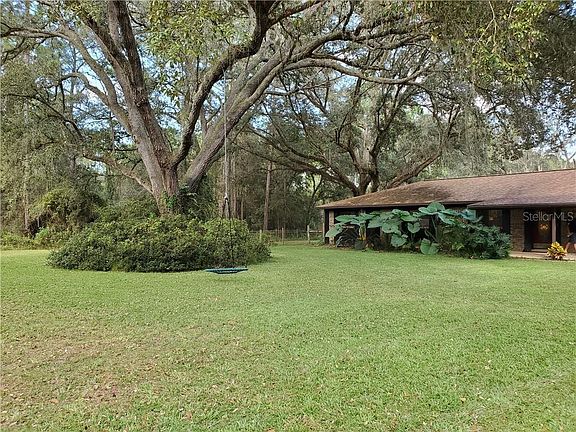 You'll fall in love from the driveway! Move in ready 3 bedroom 3 bath home on one acre! Beautiful grandfather oaks create a stunning setting. Covered front porch invites you into the spacious open floor plan where the NEW bamboo floors and Brick Fireplace warmly greet you. The NEW remodeled kitchen will delight you, boasting lots and lots of all wood cabinets and an oversized sink. Just beyond that area you enter a huge family room with a decorative antique looking iron stove, (currently not vented - strictly decorative) Then head out the French doors to the extremely large pool area - marvel at the generous patio area surrounding this refreshing inground pool. Don't you love the brick pavers and the multiple covered areas with room to have outdoor dining and shaded seating? On a cool evening relax around the firepit. Lots of woods nearby so you might see deer or other wildlife on occasion. This is Florida living at it's best.. Back inside notice the abundant closet space in the hallway, then explore the master bedroom that has a sizable walk in closet plus it's own private updated bathroom with nicely tiled shower. BONUS! One of the additional bedrooms is double sized. All bedrooms have the newer bamboo flooring. The updated guest bathroom features a stylish free standing tub. The oversized double garage with pull down stair case has a separate storage area that houses the Culligan water conditioner and water tanks with even more room for storage plus easy access to the 3rd full bath with shower that is also the pool bath. Another bonus is the fully fenced expansive and private back yard. Need even more space? Check out the 2 car carport and separate storage shed.. New roof installed in 2016, newer 2 speed high efficiency pool pump, newer 3.5 ton HVAC unit and LED lighting and 2 skylights add additional value to this special place you will be proud to call home! Don't miss out.. call to see it before it's gone... Oh! and believe it or not there's a blackberry patch in the front corner of this lovely acre site. This place has it all!