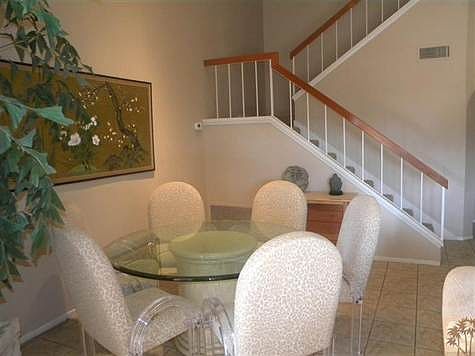 High above the valley floor, surrounded by the Santa Rosa Mountains lies Ironwood Country Club featuring two scenic golf courses, state of the art fitness center, 13 tennis courts, two pickle ball courts, two bocce ball courts and an elegant Tuscan style clubhouse. Stunning two story condo with incredible mountain views from all three patios! Features include; 2 bedrooms, 3 bathrooms, open and spacious floor plan, tile throughout, breakfast counter bar in the kitchen, cozy nook area, private jacuzzi located in the front private courtyard conveniently maintained by the HOA. The upstairs balcony overlooks the tennis courts with STUNNING mountain views from both the courtyard and the balcony and is located near the community pool. Situated in the very popular South Palm Desert close to restaurants,shopping and one of the most desired school districts. An absolute perfect vacation dream... A must see!! Available for short term or long term. Brokered And Advertised By: Keller Williams Realty Listing Agent: Marnie Balog
