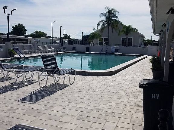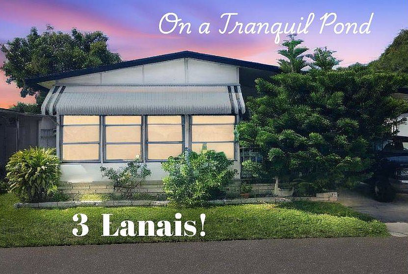 This charming 2-bedroom, 2-bath home is conveniently located on a pond for your pleasure in the lovely 55+ Pet-friendly Hacienda Village of New Port Richey, Florida. THREE LANAIS provide plenty of places for relaxation! Close to the Tampa/Clearwater/St. Petersburg area, this active retirement community has much to offer its residents inside and out, from all of its resort-style amenities to its prime location. Easily accessible to pristine beaches on the Gulf of Mexico, shopping, dining, and more! Within the village, enjoy a spacious clubhouse w/ billiards, a game room, fitness room, community events, and outdoor activities such as horseshoes, shuffleboard courts, and a heated swimming pool year-round. FEATURES of the home include: front, side, and rear LANAIS, fully furnished, NEWER roof and water heater, and a backyard pond for fishing and wildlife viewing. This residence offers plenty of opportunities to relax and enjoy the fresh Florida breezes with front side, and rear screened and enclosed Lanais. Peaceful views of the water and village are all accessible! Indoor, you will find a comfortable setting with a plush carpeted living room; bright open kitchen with essential appliances: refrigerator, dishwasher, wall-mount double oven, counter-top stove, and a breakfast bar for casual meals; and a separate dining room boasting a wall of built-in cabinets and glass china doors, as well as a large bay window to view the front porch! Retreat to either bedroom for a peaceful night of rest. Two baths offer privacy if guests arrive. The shed off the carport and side lanai houses a washer and dryer for your convenience and storage for all our extras. Lots of Natural light is what this home is all about. Enjoy the sparkling pond in the back for tranquil days and evenings. Spend time with a pole in the water or take your furry friend for a stroll around this magnificent park! Whether you are looking for a home year-round or a seasonal getaway, you can't beat this location! HACIENDA VILLAGE IS CONVENIENTLY LOCATED RIGHT UP MAIN ST. FROM DOWNTOWN NEW PORT RICHEY WITH ITS SHOPS, PUBS, AND RESTAURANTS. THERE IS A COMMUNITY THEATER AS WELL AS A RIVERFRONT PARK. EXPLORE FURTHER TO THE VIBRANT CITIES THAT SURROUND THIS PARK. DON'T WAIT, CALL TODAY! CURRENT BASE LOT RENT ON THIS HOME IS $810, BUT ADJUSTS IN 2026. All listing information is deemed reliable but not guaranteed and should be independently verified through personal inspection by appropriate professionals. Our company does not and cannot guarantee or warrant the accuracy of this information or the condition of this property. Measurements are approximate. The buyer assumes full responsibility for obtaining all current rates of lot rent, fees, and pass-on costs. Additionally, the buyer is responsible for obtaining all rules, regulations, pet policies, etc., associated with the community, park, or home from the community/park manager. Our company is not responsible for quoting said fees or policies. Financing is available through 3rd party lenders. The sales price does not include tax, dealer fees, or administrative fees. Please contact the sales agent for additional information.