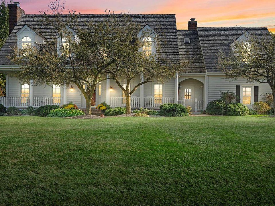 Elegant southern cape cod nestled on a large private lot in sought after Gifford Farm! Large front porch, hardwood floors, 2 fireplaces, oversized windows & quality features throughout. 1st floor includes 2 story great room with fireplace open to gourmet kitchen, executive office with built-ins, formal living room & dining rooms for entertaining. Upstairs you'll find 4 spacious bedrooms & 2 full baths including primary suite with walk-in shower, double vanity & walk-in closet. Finished lower features media room, game area & 3rd full bathroom. Beautifully landscaped yard with brick patio & firepit, 3 car heated garage. See this beauty before it's sold!