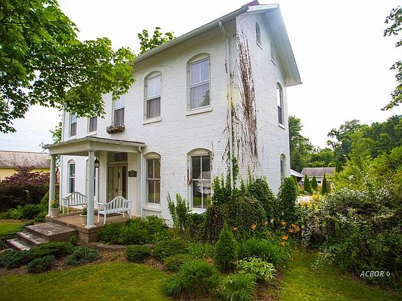 "Once upon a time" storybook house! This amazing home was built in 1867 by Judge John Morrey who moved in and had a child- all on Christmas Day! Steeped in history with original cherry, American chestnut and oak floors and woodwork, high ceilings, 3 fireplaces and so much charm! A very rare find - 3 bedroom brick home with 2 parlors with working gas fireplaces, a formal dining room, beautiful updated kitchen with custom made cabinets, copper sink, modern appliances, and walk-in pantry. Upstairs are 3 bedrooms, one with a fireplace (non-working). There are two cedar lined closets to keep woolens perfectly stored. Fenced yard with gorgeous gardens and back patio... plus a separate parcel with a 2-car garage and large garden shed with barn doors to park a third car. This home must be seen to be appreciated. Located in the quaint village of Chesterhill with Amish buggies, farmers' produce auctions, library/music hall, post office, and home-style restaurant and several churches, including an old Quaker meeting house. Fast and reliable broadband internet. Just 30 mins to Athens or Belpre. Newly added to the village’s new sanitary sewer system.