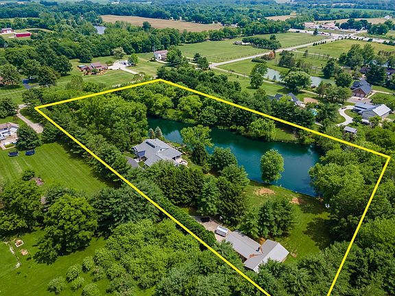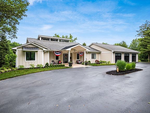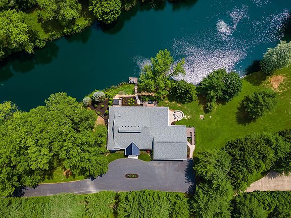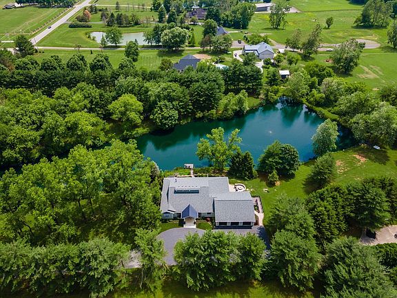Welcome to your private oasis. This 4200+ square foot home sits on over 7 private acres including a 2 acre-stocked pond. The inviting entry leads to an amazing great room with a vaulted ceiling, floor to ceiling stone fireplace, plank floors, custom built ins, and wet bar with hammered copper sink. There is a gourmet kitchen with custom cabinetry, Thermador appliances, and a huge island. The designer primary suite, great room, kitchen, and mother in law suite/gym all have stunning views of the pond. The outdoor kitchen, gas fire pit and dock are added features to this special place. New mechanicals with dual HVAC, Generac generator, hot tub and out building are additional benefits.