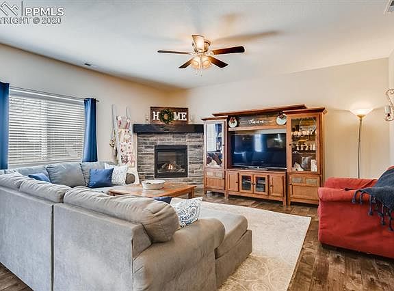 Better than new home on quiet street in popular neighborhood! On the main level, open entry way with an office featuring French doors, which could also be used as a bedroom (no closet), leading into the living room with inviting gas fireplace (with blower) and large space to accommodate even large furnishings. Living room opens to the gourmet kitchen featuring granite countertops and espresso cabinets with island, and wood laminate flooring throughout the main level. On the second floor, extra large master bedroom with... luxurious five-piece ensuite master bathroom and huge master closet. Upper level features two large secondary bedrooms, plus inviting family room upstairs. Mountain view from the upstairs family room and the master bedroom! Laundry room on the second floor with custom shelves/cabinets. Many many upgrades throughout the home. On the exterior, stone accents, three car garage for all of your toys, and an over sized-patio in the backyard, ideal for entertaining. This neighborhood has a state-of-the-art clubhouse with sitting room, kitchen, and gym, and great swimming pool and playground. Wonderful neighborhood perk. This home is a must see!