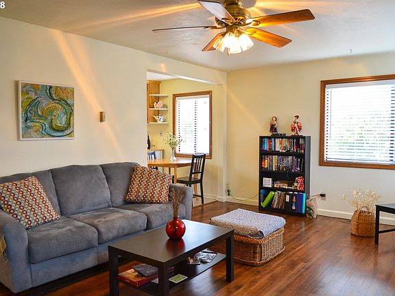 New Price. Cute 1948 Bungalow on a large, corner lot with detached garage. Wood floors in living room and bedrooms. New interior paint and blinds. All appliances included. Laundry with built-ins. New water line and hot water heater. Covered patio. Fenced yard with mature plantings. Quiet street. Detached garage. Potential to divide lot or ADU. Desirable neighborhood. [Home Energy Score = 5. HES Report at https://api.greenbuildingregistry.com/report/pdf/R140234-20180130.pdf]