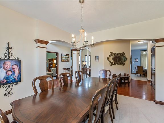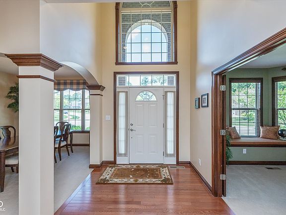 Welcome to this exquisite custom 2-story home in the highly desirable Timberlakes community, Indianapolis. With 5223 square feet, this architectural masterpiece offers luxury and comfort. An elegant foyer leads to a 2-story great room with picture frame windows. The main level office features a bay window, and the formal dining room is perfect for gatherings. The primary suite boasts a vaulted ceiling, double sink vanity, Jacuzzi tub, and a separate shower. Upstairs, a balcony overlooks the great room. With a 3-car garage, screened porch, large deck, and spacious rear yard, this property is a true gem. Highly regarded Franklin Township schools add to the appeal.