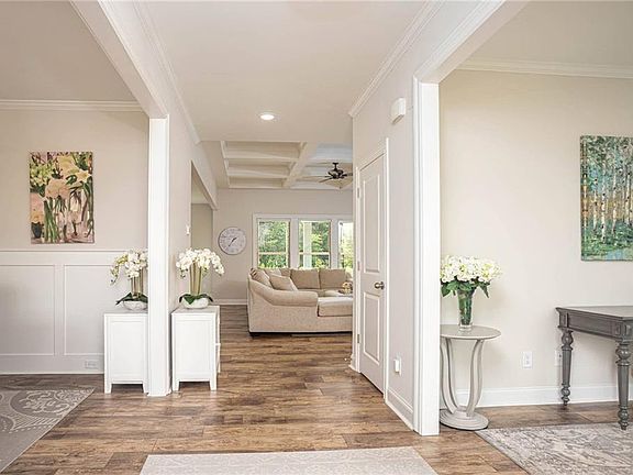 Like new and move in ready, this exquisite 5-bedroom, 3-bath retreat is nestled on a beautiful one-acre lot in one of the area’s most sought-after school districts. Surrounded by scenic walking trails, lush parks, and top-tier sports facilities, this home offers the perfect blend of luxury, comfort, and convenience for today’s active family. The heart of the home is a true chef’s kitchen complete with double ovens, quartz countertops, a walk-in pantry, and a generous island perfect for gathering. The lavish owner’s suite provides a serene retreat with spa-like touches, including dual vanities, quartz countertops, a large soaking tub, a tile walk-in shower, and a spacious walk-in closet. This expertly planned home also includes a dedicated office ideal for remote work or quiet study, as well as an upstairs media/playroom that offers a versatile space for entertainment, gaming, or family fun. Step outside to enjoy plenty of room to play, garden, unwind, and connect with nature. The epoxy-coated garage floors offer a sleek, durable, and easy-to-clean surface. The drop zone built-ins provide the perfect spot to keep daily essentials organized. The custom honeycomb blinds add convenience and elegance to every space. Zoned for top-rated schools and located in a vibrant community known for its natural beauty, this home truly has it all. From the moment you step inside, you’ll be struck by the attention to detail and thoughtful design throughout. Coffered ceilings, extensive custom woodwork, and elegant built-ins lend character and warmth to every room. The family room features a gas fireplace and custom built-ins that create a cozy yet sophisticated focal point, while the open-concept layout ensures effortless flow for entertaining and everyday living. The dining room’s classic wainscoting adds timeless charm and architectural elegance. Come see why this meticulously crafted home is the one you’ve been waiting for. Luxury, location, and lifestyle perfectly combined.