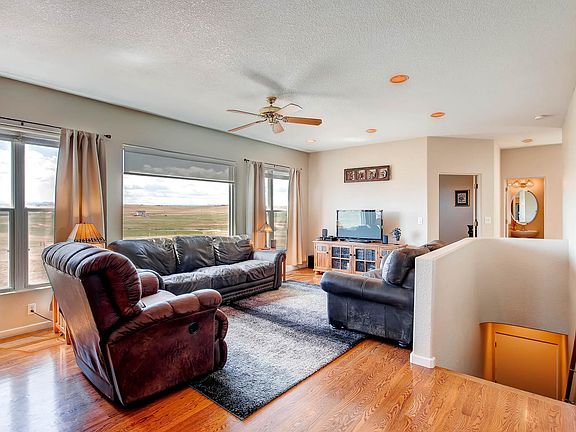 Beautiful move-in ready Colorado horse property close to Denver and Colorado Springs Gorgeous Black Forest. This custom ranch home w/magnificent views of Pike's Peak and the front range backs to a green belt where you can enjoy privacy, riding trails, open space, and a stocked pond. Pull into your private driveway and be amazed by the curb appeal and views! Step into the open floorplan and the formal dining room just off the great room. Gleaming hardwood floors throughout the home. An abundance of natural light shines through the large windows. The home was designed with astronomers' views in mind. The west-facing side of the home is designed so that you enjoy the sunset from any angle every single day. The bright kitchen looks straight on to Pikes Peak and has been upgraded with a chef-quality gas cooktop and stove. The cozy eat-in area is just off an enclosed patio built to dine out or for morning coffee with views. The master suite also enjoys beautiful views from the bedroom and 5-piece bathroom. Two additional larger bedrooms with jack-n-jill bathroom suite w/double vanity and another half bathroom finish the well-appointed main level. You'll love entertaining guests in the basement recreational area. Large enough for game tables in front of the stone-clad gas log fireplace. The huge lower bedroom is the perfect guest suite. Just off the family room is a nice entertainment room with double doors that could be used as an office or theatre room. A gorgeous 3/4 bath w/large oversized custom tile shower is conveniently located in the basement level. There is a large additional storage area in the basement. The private back patio is just off the lower level with a hot tub! The home is perfect for HORSE owners that can ride on the equestrian trails and nature lovers that enjoy the Colorado Mountain skyline. You can ride or fish the 1 acre stocked pond nearby. R.V. parking & dump station on site.
