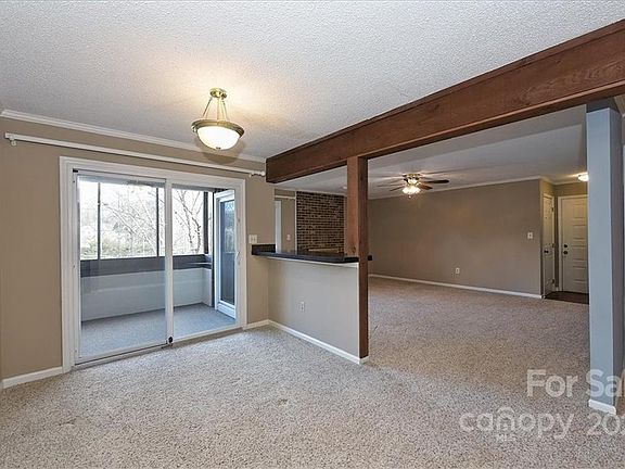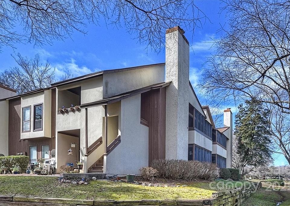 Located in the tranquil, wooded Brandywine community, 7345 Winery Lane is a top-floor condo with waterfront view of the community lake. Condo features two spacious bedrooms, primary bedroom ensuite with a walk-in jacuzzi shower (2020), large hallway with access to second bathroom, hardwood floors, granite countertops and tile backsplash in the kitchen, ample storage, and carpet throughout. Bathrooms have new beveled mirrors. Primary bedroom, dining room, and living room open onto the screened-in balcony with a large exterior closet for storage. Refrigerator, microwave, and Whirlpool washer and dryer (2014) all convey. Trane HVAC and Rheem Hot Water Heater were installed in 2014 and new carpet was installed in 2015. Fireplace sold as is with no known problems. Community amenities include walking trail around the beautiful, private lake for residents, pool, and paved sidewalks. Located in the heart of East Charlotte, easily access to Uptown, 485, University, Plaza Midwood, and NoDa.