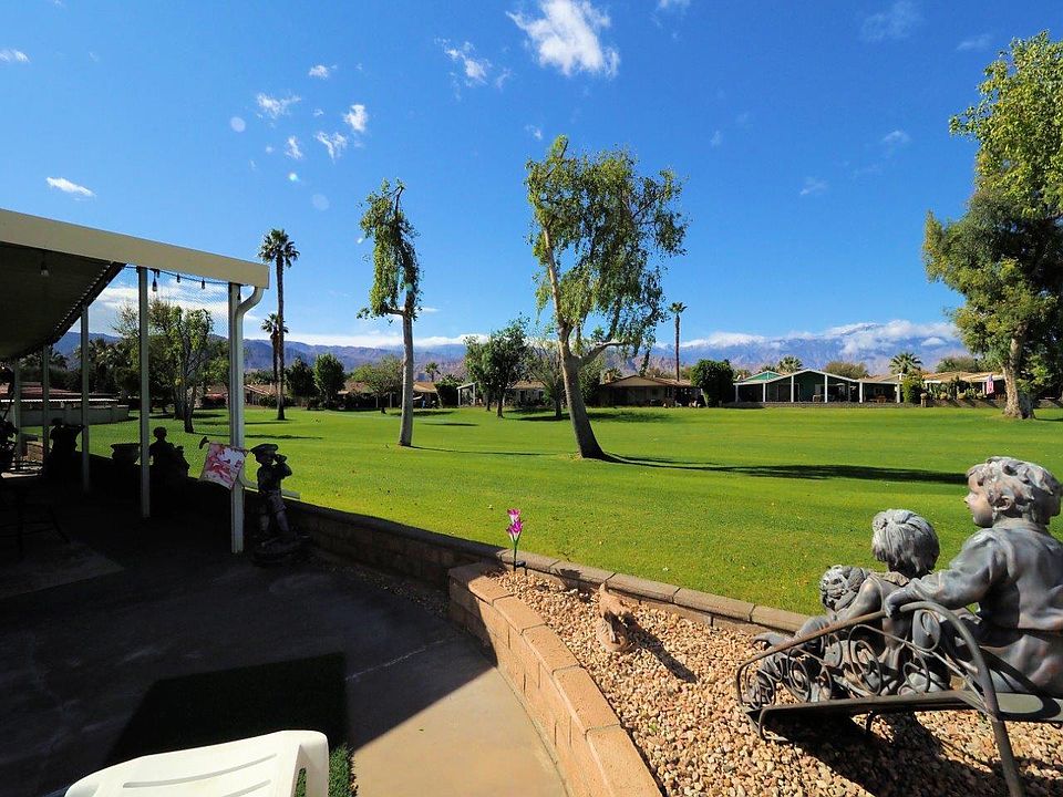 3D Video Truly a 'show stopper' This house is pure perfection!! Professional top Hollywood designer stopped at nothing to create a totally upscale one of a kind masterpiece. Superb quality with unbelievable flair and casual elegance . Only the highest quality products were used. This house features two glass block bars, a stone wall, fabulous floorings, a custom closet area to die for. The kitchen has been spared no cost with unique and artful finishes & premium appliances. Wonderful outdoor living areas with a serene golf course view. SUNCREST CC is the greatest 55+ community. It boasts a lush green environment with wide meandering boulevard style streets. Great views. Club House hosts many activities (when not Covid time) . There is an outstanding lush golf course which many call their 'favorite' with a pro shop and cafe, putting green plus pickleball and tennis just for fun. 3 pools, 3 spas. Truly resort style 55+ living for affordable living, Rents have not gone up five years!!! Fabulous location for sure....premier shopping and restaurants steps away. Eisenhower hospital and medical center 3 minutes away. Come see this neighborhood....you will love it here. I do!!