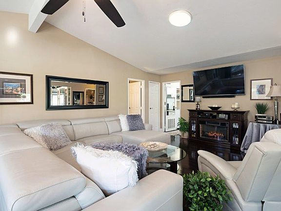 !!Major Price Improvement!! THIS IS IT! Step into remodeled luxury! Located on the lake in the serene Suncrest Country Club, this beautiful home has been tastefully remodeled from top to bottom. Inside you'll find designer paint, upgraded stainless LG kitchen appliances, Upgraded granite throughout the kitchen and baths. Interior Laundry Room with an extra-large laundry sink. Designer backsplash with expanded newer kitchen windows which allows for magical lake views. This gorgeous home has it all, recessed LED lighting, newer flooring throughout, newer double paned windows throughout, vaulted ceilings in the living room and family rom, sola-tubes throughout, and a newer heavy duty rooof. The large primary suite, features a huge wrap around walk in closet. The primary bath, features custom lighting, dual sinks, newer soaking tub, separate shower with travertine flooring. Plantation shutters in both bedrooms and bathrooms add to the luxury this home offers. Outside you'll find newer paint, an oversized shed, with covered parking for two cars and a golf cart, the back patio offers unobstructed full lake views, with golf course views to make this an outstanding value at this price, all this in 1920 sq feet of living space. Suncrest offers 3 Pools and spas, tennis and pickleball courts, and a 9-hole executive golf course. Suncrest is a 55+ active adult gated community located near dining and shopping. The clubhouse hosts several seasonal events, as well as a weekly social events.
