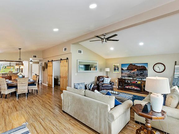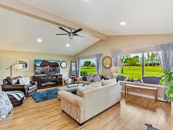 This magnificent home is situated on the 7th fairway with golf course & mountain views. From the moment you walk in the front door, it gives you a sense of calm & peacefulness, it just feels like home. This home features laminate flooring which flows seamlessly throughout the home, vaulted ceilings with recessed lighting & newer double paned windows for energy efficiency. Entertaining is a breeze, with the open concept floor plan. The kitchen features upgraded cabinetry, quartz countertops designer lighting, breakfast area & a large center island with seating. The primary bedroom features a large walk-in closet, en-suite bath, wainscoting & barn door. The 2nd bedroom features a walk-in closet with a barn door, ceiling fan & wainscoting accents. The den could be used as a home office as French doors were added for a separate private entrance or as a 3rd bedroom for overflow company. A beautiful brick walkway paves the way to the back of the home where composite decking flows across the backside facing the golf course. The large outdoor area provides ample room for multiple entertaining areas for al fresco dining, Barbecuing, relaxing on your chaise lounge under the stars with a glass of wine or a cup of coffee in the early morning hours while taking in the amazing views. Suncrest is a 55+ active adult community, with a registered par 3, 9 hole golf course, sport courts, clubhouse, & 3 pools/spas. Suncrest is located minutes away from medical facilities, dining & shopping.