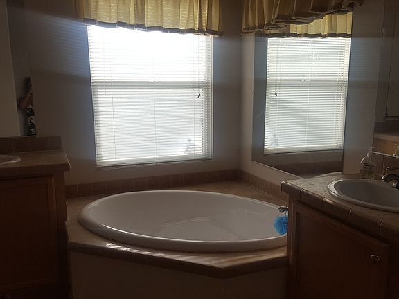 This is a nice home and a rare 3BR, very nicely maintained.Semi custom construction. Double paned windows.Really good layout in just over 1500 sq.ft. Built in 2005 and in great condition. Pretty, landscaped backyard area for privacy. From carport, enter through laundry room into a large and spacious kitchen with island. Nice roomy pantry. Off kitchen is a small dining or sitting area with french doors out to a front patio area. Wonderful master bedroom with an ample master bath and separate shower and walk in closet. 55+ community with pools, spas, tennis and a golf course and a lively group of homeowners. Space rent only 571. Still waiting for bank to approve selling the property for less than the loan. Hoping to have a response by January.
