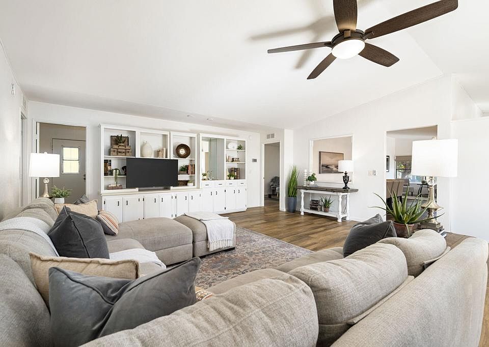 Experience Bright, Spacious Living in This Stunning 3-Bedroom Home! This beautiful 3-bedroom, 2-bath residence is filled with natural light and boasts an open floor plan designed for comfort and style. High ceilings enhance the spacious feel, leading to a large living area with a custom-built entertainment unit, generous dining space, and a convenient breakfast bar for casual meals.The primary suite is a true retreat, featuring a large bathroom with a separate shower and tub, and two expansive walk-in closets. Each guest bedroom is equally inviting, with ample closet space and ceiling fans for added comfort. Recent updates include luxury vinyl plank flooring throughout, custom built-in cabinetry, new window coverings, fresh and bright interior paint, and a nearly new (2 years old) HVAC system. Outside, you'll enjoy low-maintenance landscaping, a large storage shed, covered parking for two vehicles plus a golf cart, and access to community amenities. Offered Partially Furnished. Suncrest Country Club is an exclusive 55+ active adult community offering 3 pools, spas, tennis and pickleball courts, and a 9-hole executive golf course. The gated neighborhood also provides a vibrant social calendar with seasonal events and weekly gatherings at the clubhouse, all within close proximity to dining and shopping.Don't miss this opportunity to join the Suncrest Country Club lifestyle! Buyer to verify all information.