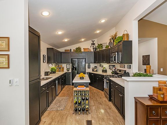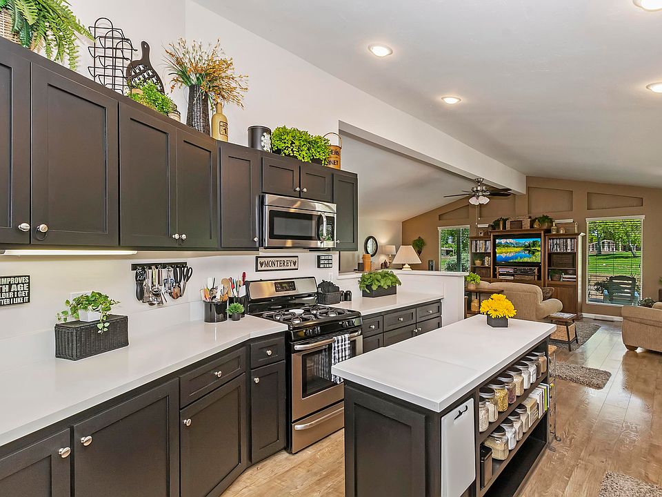 From the moment you pull up to this property, it just feels like home. The stroll up the walkway to the front door has impeccable, mature landscaping and pots with lifelike plants, for easy care landscaping. The pride of ownership is apparent with this home. Once you step inside, you will be delighted at the open floor plan with views of the 8th tee box. This home is light & bright, and every decision was well thought out and tastefully designed. The kitchen features white Quartz counter tops which contrasts beautifully with the rich dark tone cabinets with soft close feature, center island and recessed lighting. The master suite features fresh paint, vaulted ceilings, ceiling fan, a large walk in closet with extra storage and a designer mirrored barn door. The master bath has been updated with a tile shower with a bench & frosted glass doors, & vanity with quartz counter tops, & extra storage. Additional updates include dual paned windows, window treatments, laminate flooring throughout, new AC, Furnace & water heater. Club amenities include 3 pools, tennis courts, pickleball, clubhouse, billiards room and 9 hole executive golf course. Pay per round or buy an annual membership.