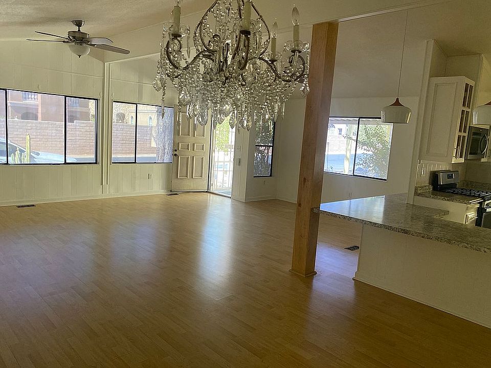 *MOVING TO NEWYORK MUST SELL* Gorgeous two bedroom two bath recently remodeled . Enjoy a Chefs Remodeled kitchen with new cabinets and countertops, all new appliances, new farmer sink and sit down counter. This open floor plan combines the Living room and the dining room and has a gorgeous Svorski crystal chandelier with built-in cabinets. Two spacious bedrooms, the master bedroom has a Jacuzzi's walk-in soaker tub, plus a new marble vanity and the guest bathroom has a new shower The laundry room is spacious with washer and dryer. Outside is a great big storage unit and enjoy the side patio for entertainment and relaxation. Suncrest country club is a gated community with golf, tennis and pickle ball. It offers a huge clubhouse with a library, billiards, small café and every Wednesday night is happy hour. Perfectly located for entertainment, shopping, medical areas. Home is 1440 sq. ft. with Berber Carpeting and updated Laminate flooring, Numerous Amenities Come take a LOOK, you will not be disappointed home is open daily space rent is $606.00 per month Call First! OWC @ 119,000 SELLING PRICE COME TAKE A LOOK!!!