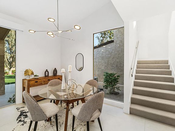 This luxurious remodeled condominium is situatied on an elevated lot overlooking the 12th fairway of the North course in Ironwood Country Club. The expanded porcelain tiled patio flows seamlessly into the interior of the home. The open floor plan is perfect for entertaining. The Kitchen boasts High-end, energy-efficient Thermador appliances and includes an induction stove and a double oven with convection and microwave options. Custom, high-gloss cabinets, and ample counter space provide an ideal setting. The laundry area features an LG stackable washer and dryer and plenty of counter space for folding the laundry.Upstairs, there are two additional bedrooms and two bathrooms. One features a deep Kohler soaking tub, and both have tiled showers. The large upstairs deck offers an ideal spot to enjoy the stunning sunrises and moonrises over the incredible mountain views. The home also features an upgraded electrical panel, keyless entry lock, tankless water heater, and custom power shades. Ironwood is a private country club, close to El Paseo and the living desert. Features two championship golf courses, state of the art fitness center and Tuscan Designed Club house. Membership opportunities are available.