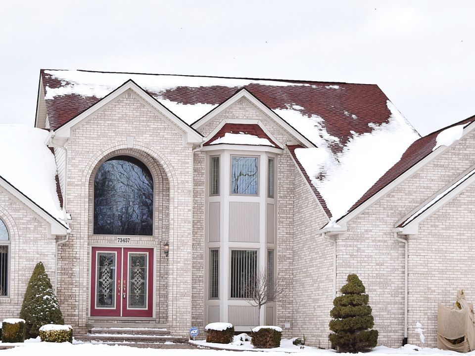 Beautiful custom built split-level in Bruce Twp! This home has everything you could ask for. Kitchen remodeled with Lafata cabinets enhanced with soft close, under and above cabinet lighting, under mount sink and stainless steel appliances. Breakfast nook has new large doorwall for tons of natural light. Great room has new windows, natural fireplace with gas logs and marble surround. Den has new Lafata built-in shelving and hardwood flooring. First floor master with walk-in closets. Master suite features granite countertops, stall shower and Jacuzzi tub. Outside is a dream with lot extending 15 feet past the creek. Additional 1 car garage with electric and water. Built-in fire pit perfect for Michigan summers/falls. Two new stamped concrete patios and covered deck. Too many extras to name. Book your appointment today!