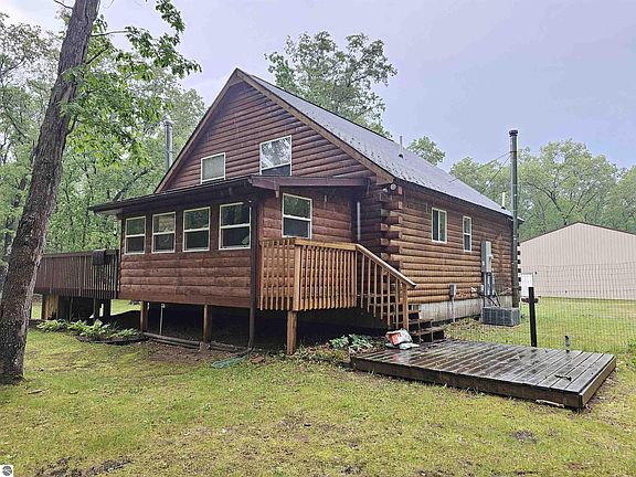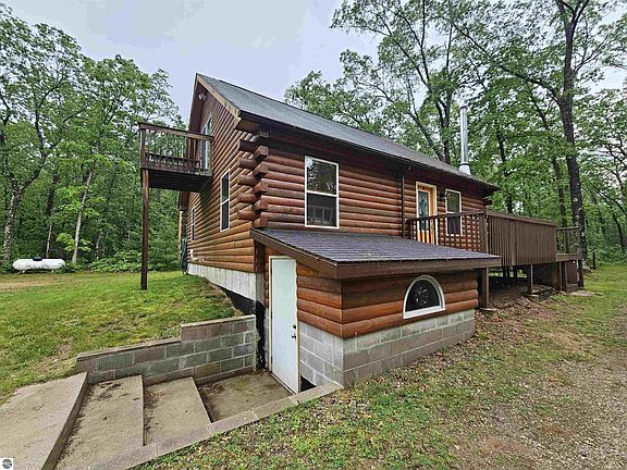 Cozy log home with 3 beds, 3 baths, and full basement nestled in 10 wooded acres that abuts Federal Land just minutes away from Manistee for easy commute for work or play. Property has a 2 car garage with lien-to, 40x64 with 14 ft side walls polebarn that is heated, electric and car lift, 2-12' overhead doors and one 10' overhead door, concrete approach, and wired for 220. Residence has a long driveway for privacy off of Caberfae Hwy (M55 Hwy). Basement has laundry facilities, built in shelving for an ample amount of storage, 3/4 bath, has entrance from inside or outside, an area to store wood for your woodstove in basement plumbed into ducts. This property has been very well maintained and will not disappoint. Will make for a great Year Round Home or Vacation Home. Seller's will be looking at all offers on Monday, June 10th.