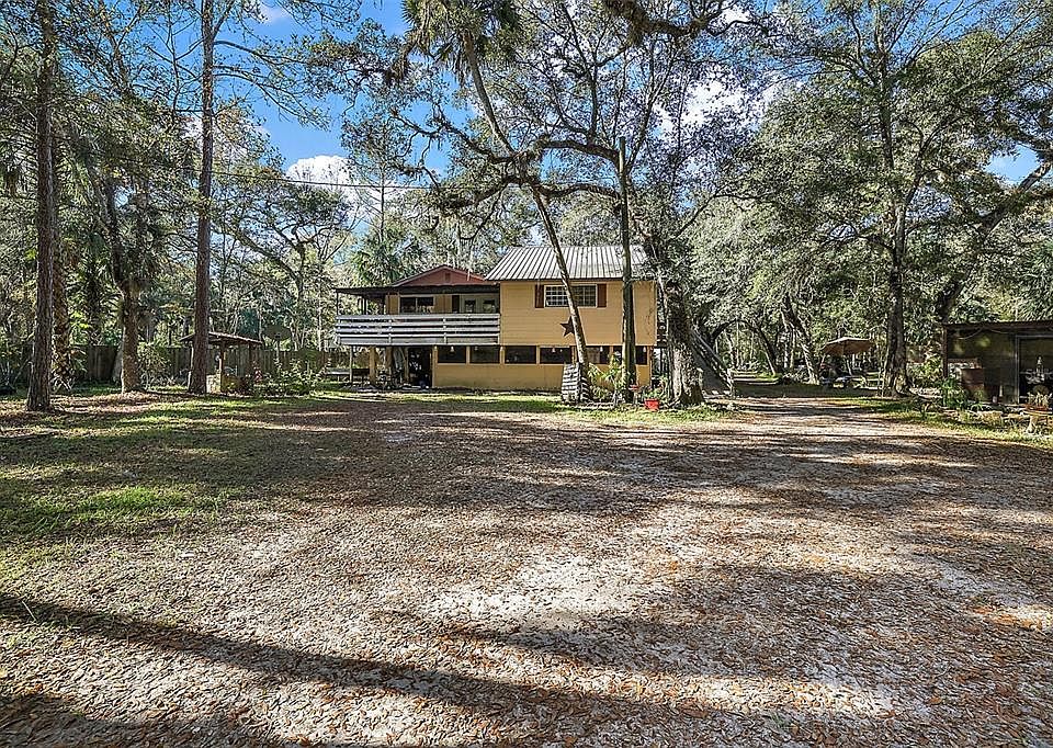 Escape to this two-acre secluded sanctuary nestled within the heart of Old Florida near the Withlacoochee River. Enveloped by the lush landscape, this residence unveils a spacious upper floor, with the primary bedroom positioned to the right upon entry. The bedroom boasts a walk-in closet and a private bathroom featuring a walk-in shower. Adjacent to the dining room, a porch offers a vantage point to survey the front yard. The kitchen is equipped with a generous pantry/storage room for all of your cooking gadgets and groceries. A guest bedroom, bathroom and storage closet finds its place adjacent to the kitchen. The ground floor unveils a multifunctional space, featuring a storage room and a bedroom/bathroom combination that could serve as an in-law suite. The property allows for many functions with a storage shed and animal pens readily available for use. Schedule your private showing today!