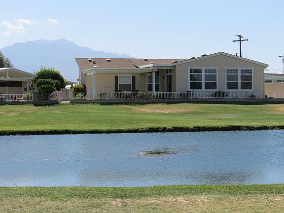 BEAUTIFUL modern golf-course home in Tri Palm Estates & Country Club! This like-new, 3-bedroom 2-bath home overlooks the pond on the 15th fairway, and offers panoramic mountain views from the covered patio. The home is full of modern touches inside and out, from roomy vaulted ceilings, updated kitchen, and a floorplan designed for ease of entertaining, to features that will enhance your comfort and safety, such as a fire sprinkler system, roof insulated with an additional heat barrier for cool comfort, even additional 220V for you to add your own spa! Located on peaceful San Carlos Drive, this beautiful home is turnkey furnished with comfortable and stylish furnishings, and all appliances are included. Even the golf cart is included! This one-of-a-kind home is clean and truly move-in ready. Tri Palm Estates & Country Club is an active 55+ community where owners enjoy free unlimited golf on the 18-hole and 9-hole par-3 courses, putting green, Olympic-sized swimming pool and spa, tennis, basketball, shuffleboard, pickle ball, and use of the clubhouse with its restaurant, bar, banquet hall, billiard room, and clubs with organized activities. With easy access to I-10, you're just minutes from the shopping, dining and services of Rancho Mirage, Palm Desert and downtown Palm Springs. Come make this beautiful home your peaceful desert getaway!