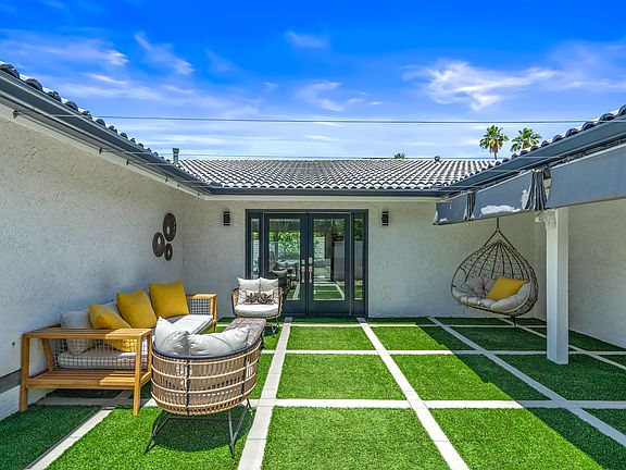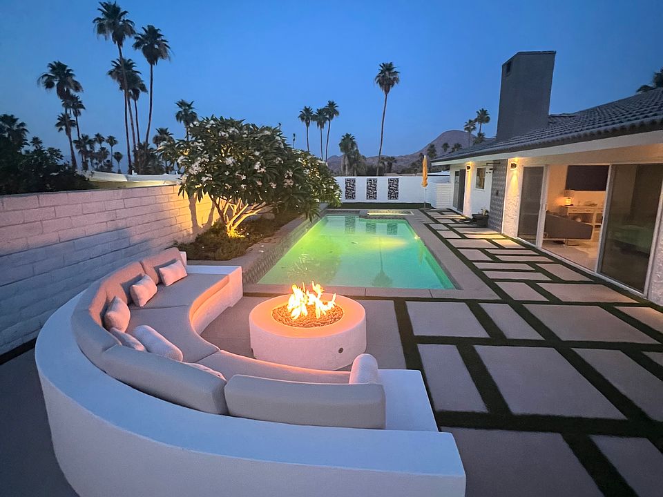 Welcome to your dream escape in the heart of Palm Desert's coveted Silver Spur Ranch neighborhood. This fully remodeled vacation rental blends modern elegance with desert charm, offering a serene and stylish getaway for families, remote workers, and sun-seekers alike. Step through the private front courtyard into a tranquil lounging and conversation area are perfect for morning coffee or evening cocktails under the stars. Inside, designer finishes and polished porcelain tile floors flow throughout the home, creating a seamless and sophisticated ambiance.The gourmet kitchen is a chef's delight, featuring stone countertops, upgraded stainless steel appliances, and ample space for entertaining. The open-concept living area offers plenty of comfortable seating, a romantic fireplace for ambiance and a large television for watching sports or your favorite movie. The luxurious primary suite offers a king size pillow top mattress, hotel quality linens and pillows, remote controlled blinds, and direct access to the pool and spa for a true resort-style experience. Work and relax in harmony with designated workspaces in the bedrooms and a private office for focused productivity. Outside, indulge in the ultimate desert lifestyle with a custom fire pit with conversation area, outdoor kitchen with built in gas barbecue, bar area and dining al fresco. The amazing private heated pool and spa offers a soothing water feature and outdoor shower, all framed by breathtaking mountain views. Additional amenities include a two-car garage, high-speed Wi-Fi, and smart home features to ensure comfort and convenience throughout your stay. Whether you're here to unwind, explore, or work remotely in style, this Silver Spur Ranch gem offers the perfect blend of luxury, privacy, and location. Seasonal Rental Jan-April $9000 per month, May-September $4500 per month, October-December $6000 per month. A $1500 utility deposit is required. Actual cost of utilities will be deducted from deposit and any remaining balance will be refunded to guest. If utility charges exceed deposit amount tenant will be responsible for excess charges.