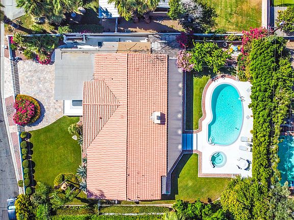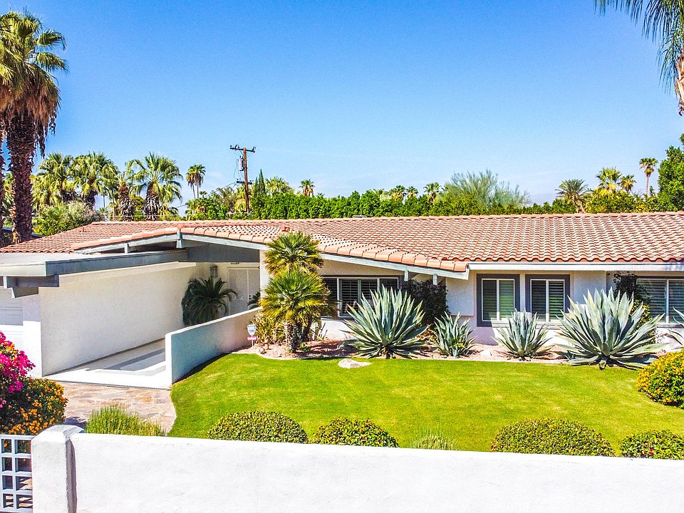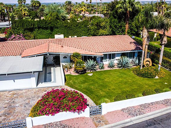 Desirable, private, South Palm Desert cul-de-sac. Traces of historic Frank Capra's 'It's a Wonderful Life' history. Charles Du Bois architect built. Modernism style. Secluded rear landscaped property with generous outdoor living space and patios. Pool/jacuzzi. Iron gate security at front entry. Storied iron hummingbird screened front door. New tile roof & shutters. Tile floors. Ceiling fans. Indirect lighting t/o. Fine finishing touches. Gourmet kitchen used for TV cooking show. Add on private side office with bath & separate entry. Some art work, outdoor sculptures, furnishings negotiable. A local, mid-century treasure.