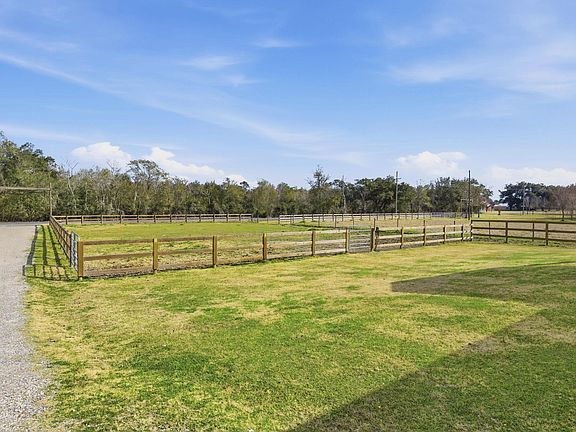 Welcome to this stunning farmhouse luxury barndominium located in Carlyss and situated on almost 8 fully fenced and cross-fenced acres—perfect for horses, livestock, or simply enjoying wide-open space. The property features a 30x40 barn with four stalls and a 15x40 lean-to, plus a rear arena ready for training or riding. A stocked pond adds to the beauty and functionality of the land. Inside, the custom barndominium offers four full bedrooms along with two additional bonus rooms and a half bath, providing flexible space for a game room, extra bedroom, office, or hobby room. The open-concept kitchen and living area is ideal for entertaining and everyday living, blending rustic charm with modern finishes. This property truly offers the best of country living with upscale comfort.