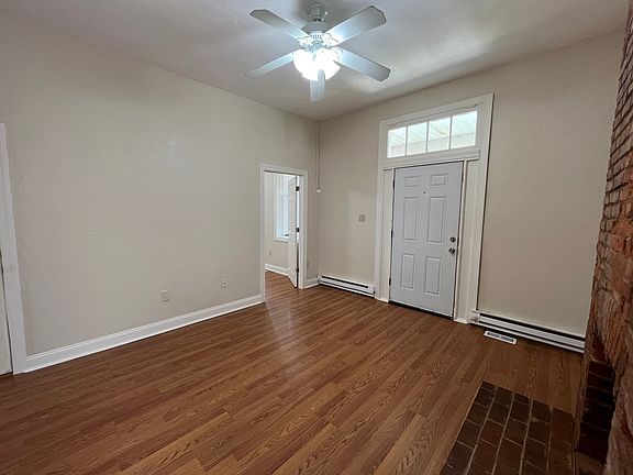 This is the entire first floor of a duplex which has been completely renovated. It has private entrances in the front and back of the building, a covered front porch, and internal access to private laundry and storage in the basement. It features a high efficiency forced air furnace and central AC, tall ceilings and ceiling fans throughout, hardwood floors, exposed brick, decorative fireplaces, and ceramic floors in the kitchen and bathroom. The large kitchen has oak cabinets, ceramic counters and backsplash, dishwasher, built in microwave, glass top stove, refrigerator, garbage disposal, decorative brick fireplace, and room for a table. There's a large family room on the back of the apartment with lots of natural light. The front room has a decorative fireplace and could be used as a den or dining room. One of the bedrooms is larger than the other and has exposed brick, but they both have big closets. Landlord pays water, sewage and trash. Tenants pay gas and electric. One off street parking space is included behind the building. This duplex is located on a quiet street in Swissvale, just a few blocks from the busway and Edgewood Town Center. The tenants share a small yard in the back and a front porch. One off street parking spot is included and there is easy on street parking. All our properties are pet friendly for friendly pets with a two-animal maximum. There are no breed or weight restrictions. We require proof of rabies vaccinations (and licenses for dogs), but we do not charge additional rent or fees for animals. Smoking is not permitted in any of our properties.