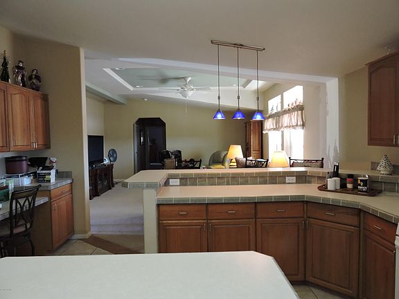 Almost an acre sits the nicest manufacturer home built w/wrap around front porch. 2x6 construction, well insulated; Beautifully painted walls w/warm colors. Neutral color carpet w/wood; tile & vinyl floors. Great Room floor plan has can lighting plus lots of natural lighting. Enter into double door Master suite which has separate tub and shower w/ dual sinks. Walk in closet. Very large bdrm. Washer and Dryer in separate laundry room stay (as is condition) Its move in ready. This property has double chain link fencing; ideal for dog run. Plenty of room for a garden. Make the tuff shed your workshop or use as storage. Large covered carport w Beautiful rear covered porch. Concrete slab has electrical wiring for spa if desired. A must see.