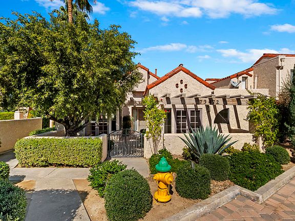 Location, Location, Location! Welcome to El Paseo Village, where lifestyle meets luxury! This exceptional condominium, nestled in a charming community just a block south of El Paseo, offers the epitome of convenience and style. Immerse yourself in a fabulous location, steps away from premier shopping and dining. This residence boasts a spacious 1701-square-foot floor plan, featuring 17-foot ceilings in the living room, a cozy gas fireplace, and two master suites for unparalleled comfort. Embrace outdoor living with two patios, including a delightful enclosed courtyard front patio. The prime position within the complex places you right next to the inviting swimming pool, relaxing spa, and vibrant tennis courts. This unit has been meticulously maintained by current owners, and is ready for your updates.