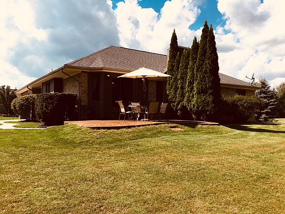 Beautiful 2000 sq ft, 3 bedroom, 2.5 bath brick home on over an acre located on a private street just north of the village of Romeo. Updated kitchen with granite counters and stainless appliances. Wood floors throughout. Brand new gas fireplace just installed. Bonus 1st floor office/den room. 3 bedrooms carpeted. First floor laundry room. Stamped concrete patio. Finished basement with large enclosed storage areas. Pool table and basement sofa included Stocked 100' x 50' fish pond. Very private setting as property borders 60 acres of woods. Romeo schools Call to schedule an appointment