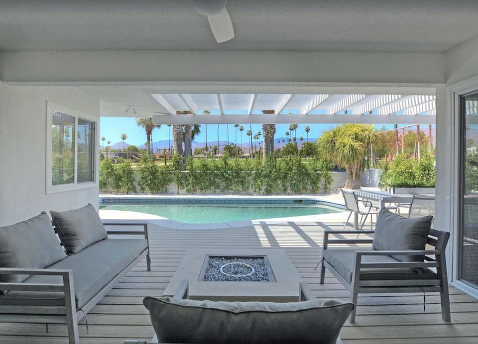From the moment you enter this designer influenced mid-century remodel with golf course and mountain views you are transcended into a zen like tranquility.This 2-bed,2-bath condo offers luxurious living space with open floor plan. Enjoy outdoor living while sitting around the firepit on the expansive Trek decking overlooking the pebbletec pool while taking in the mountain and golf course views.Indoors, the ambience has been set with a soft color pallette, designer furnishings, embers in the horizantal electric fireplace and large screen TV. The primary bedroom with newly remodeled ensuite opens to the outdoor patio and pool areaIronwood Street is a primary location in South Palm Desert. Walking distance to Shadow Mountain Golf Club, tennis courts, and El Paseo where you can enjoy El Fresco dining, couture and casual shopping or meandering in and out of famous art galleries. It's all right here, so what are you waiting for? Start living the lifestyle that Palm Desert is so well known for.