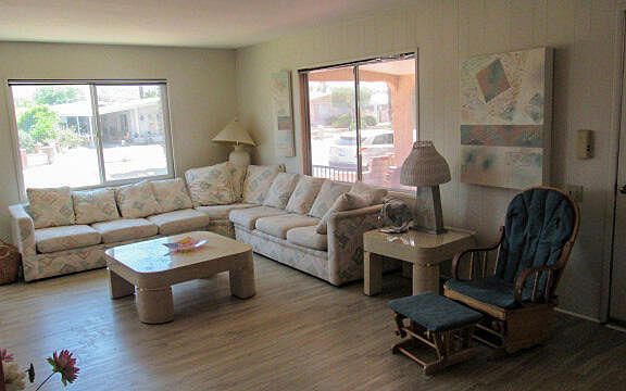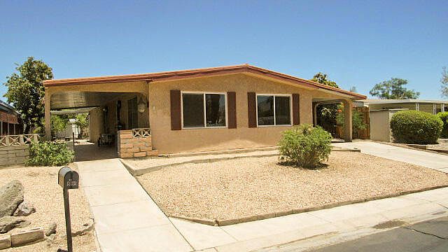 New Reduced Price!!!This home features a 6,534 sq. ft. lot with room to build a garage or put in a swimming pool. There is also a possibility to build a casita if you desire extra living area.The clubhouse is just around the corner to give you easy access to the pool, restaurant, exercise room, sauna and especially free golf with ownership. This unique home has a hacienda look with its stucco finish and arches and tile patio. The living/dining area has a mountain view through the large picture windows. The galley kitchen is accessible from the family room and dining area and flows into the utility room. The guest bathroom is across from the large guest bedroom. The master suite is in the rear of the home and has a vanity dressing area. The walls have been painted to give a light fresh feeling and the floors have laminated flooring. Call to tour this unique home in Palm Desert Greens.