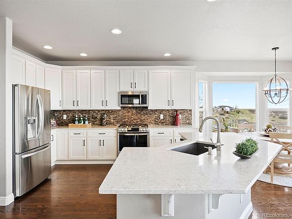 Indulge in luxury and serenity with this exceptional home nestled at the end of a private cul-de-sac in desirable Sapphire Pointe. Perched on a remarkable .28 acre lot, this meticulously maintained home boasts beautiful upgrades and impressive views stretching as far as the eye can see. The stunning kitchen, renovated in 2021, features beautiful custom (soft-close) cabinetry, luxurious quartz countertops, newer stainless-steel appliances, and a huge walk-in pantry. The open-concept eat-in kitchen leads to a magnificent newly built deck (2021) complete with a built-in grill, offering ample space for entertaining and soaking in the serene setting. The two-story family room, adorned with a gas fireplace and Hunter Douglas Silhouette window coverings, is bathed in natural light pouring through the expansive windows, framing beautiful valley views. A secluded main floor office, boasting an equally impressive view, provides a tranquil retreat for work or study. Ascend the staircase to discover four generously sized bedrooms. The recently updated full-hall bathroom features a new vanity, lighting, and mirrors, while the primary suite beckons with luxurious amenities, including a double-door entry and a 5-piece bathroom overlooking the picturesque open space. Whether hosting lively gatherings with friends or enjoying peaceful evenings with family, the finished (with permits) walk-out basement offers endless entertainment possibilities with its theater area, wet bar, dedicated wine cellar, and recreation space. Every detail of this remarkable home exudes pride of ownership. Added bonuses include new lighting throughout, 2023 hot water heater with recirculating pump, Nest thermostat, Ring doorbell and even horseshoe pits in the backyard. Further enhancing the allure of this property are the impressive amenities within the community, including a pool, clubhouse, and scenic trails.