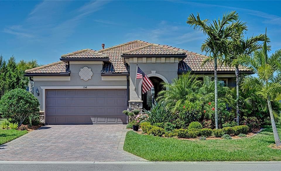 Experience the joy of living in this Tropical Paradise retreat, right in the middle of all the activities available in the 55+ community of Del Webb Lakewood Ranch. This Summerwood Floor plan is the 2 bedroom, 2 bath plus den, 2 car garage plus golf cart version. The sunsets are amazing , and with covered lanai area plentiful, you can enjoy the outdoors in the back, or on the covered porch in front! In the updated kitchen, the dishwasher and refrigerator have been replaced. The family room has a beautiful fireplace that makes this home unique, and the built-in-office leaves plenty of room for a pullout couch as well. As you come out to the lanai, the clear view screen brings the outdoors in. This home is contemporary, elegant, and the minute you walk through you will say :"Welcome Home". The Del Webb Lakewood Ranch with its resident access to Masters' Ave. makes going downtown, to UTC mall, beaches and anyplace else you want to go to a breeze!
