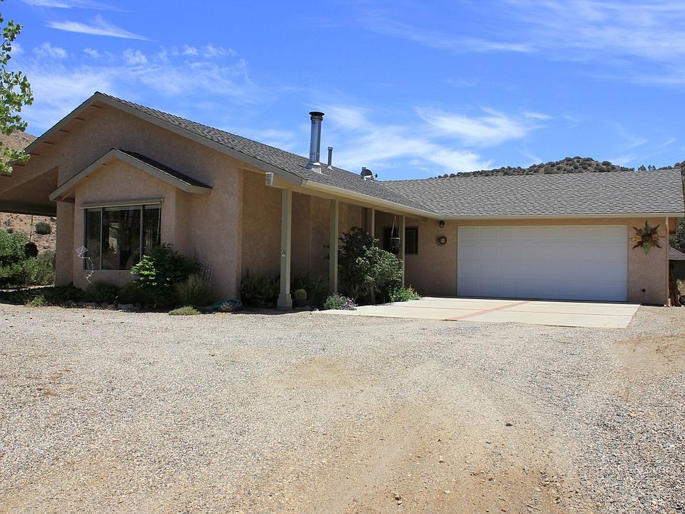 Move-in ready 2 Bedroom, 2 Bathroom Home situated on 5.38 acres in Kernville! This 1,286 sqft Open Concept Home with Vaulted Ceiling was built in 2000. The Living room has several Windows allowing for lots of Natural Light, nice Bay Window sitting area and a Pellet Stove. The Kitchen has many Cabinets, Can Lighting and Direct Access to the Patio. The view from the Patio captures the beautiful Mountain Views. The Master Bedroom is large with a sliding door to access the Jacuzzi/yard. The Guest Bedroom is also a good size. The indoor Laundry Room is large with a Countertop that can be used for folding clothes or crafts. The 2-car Garage with its direct access to the house has a Sink and plenty of space for Storage. The lower portion of the property is set up for Livestock and has a small Tack Room with Water and Power. There is plenty of room to park a Horse Trailer, RV, Boat or even build another Garage if you desire. The Tranquility and Views make this a very special Home & Property!