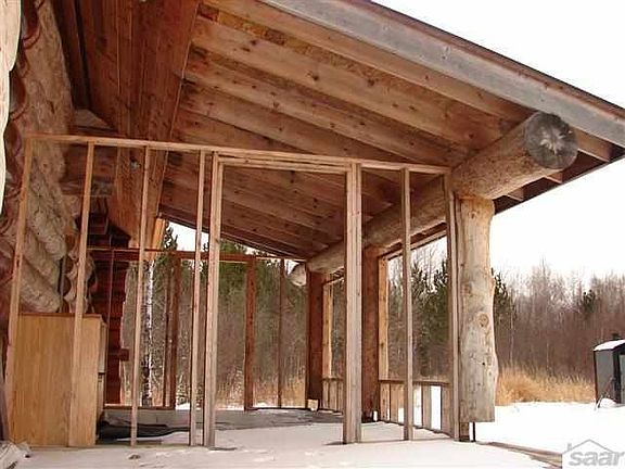 Log home in need of finishing, 2 stall garage, pond, long driveway, couple out buildings and some fenced areas. Sold As IS.