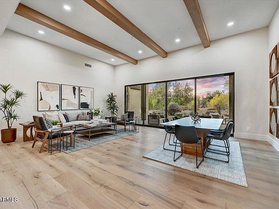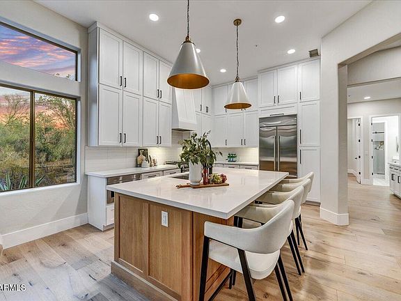 Wow Monterra of North Scottsdale on private acre lot that feels like 5 acres!! 2023 Modern Rustic remodel with finishes and features typically found in 2-3 million $ homes. Amazing split floorplan with a transformed luxury look. The newly expanded and reconfigured kitchen with oversized island is designed for executive entertaining. All cabinetry updated with white shaker doors and amazing use of natural finishes and white quartz counters throughout. Real hardwood wide-planked floors throughout make this upscale home absolutely, stunning. The spacious master retreat will satisfy all your luxury needs with high ceilings, looking out to oversized patio, double walk-in closets, floor to ceiling tile shower, new free-standing tub and stunning tile shower! New Iron front door just installed.