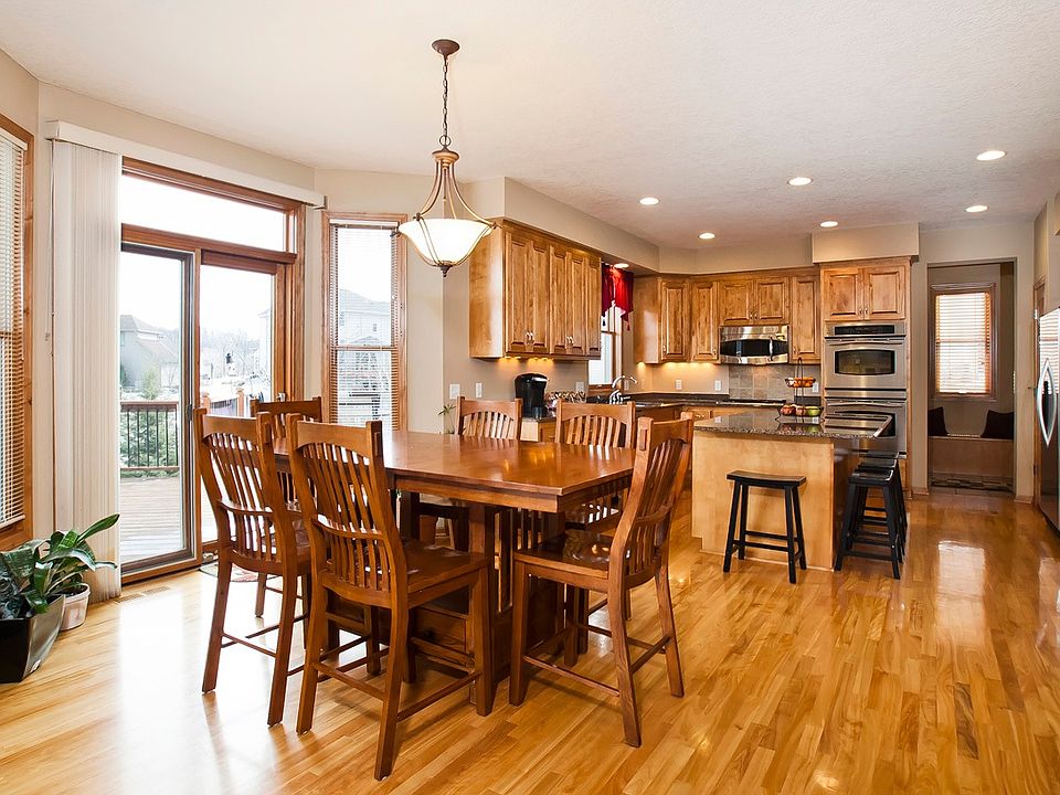 Enjoy Summer while sipping lemonade on the large deck overlooking a pond or cozy up and watch the rain on the lower level paver patio. An under-decking water shield will keep you dry from dripping water overhead! The large main level is wonderful for entertaining and dual staircases are convenient for a quick run upstairs no matter where you are. The kitchen is dream with every modern convenience and beautiful finishes. A large formal dining area is perfect for celebrations and growing families and the main floor office is great for the home computer or a full work-from-home office. An upper level loft is designed for homework headquarters or works well as a play area.Four bedrooms on the upper level (including a princess suite) mean that the family can stay together, while a lower level bedroom and 3/4 bath offer separate space for teenagers or guests. The lower level family room is set up perfectly for movie night with an eat-up counter, area for big-screen TV (current TV not included), indirect lighting, and surround sound speakers. There's also a beautiful lower level bar with glass door cabinets, under-cabinet lighting, tile flooring, wine fridge, & beverage fridge...and plenty of space for a pool table!