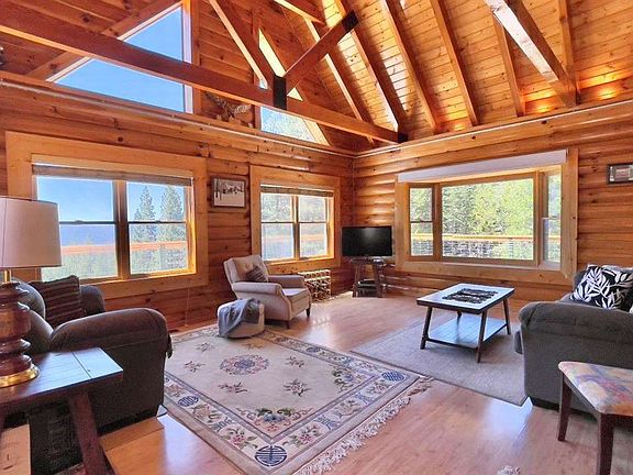 EXCITING OPPORTUNITY TO OWN THIS LOG HOME above Lake Davis! BIG-TICKET Views at 6,000 feet! Tri-Level Furnished Mountain Log Home 2,413 s.f. on 3.6 forest acres. The wide open view toward Lake Basin/Sierra-Nevadas many peaks & mountains will always impress you and your guests! There are 5 separate sleeping areas, all with their own closets, new beds and bedding! A nice big well-appointed kitchen & large dining area comes stocked with all the necessities. Elegance/Rustic 16' X 17' downstairs bedroom/library with no common walls has it's own separate entrance and nice woodstove. High ceilings, exposed beams, exterior Ledge Stone veneer gives it a classic look. Glorious varietal wooden interior shines like it's loved! Garage is over 1,000 s.f., with 2 work areas...is full of expensive building materials and useful items. Most everything included is new or newer. Treasure trove of high quality wood logs for the stove and for repurposing to functional art! Pop down to Lake Davis in 5 or so minutes!! Private road! Fiber Optics. List of features and upgrades attached for your realtor to share with you. IN PLUMAS RECREATION DISTRICT! Property has a carved out ski slope! Get to Tahoe or Reno airports in less than 1 hour, or fly in to Nervino-Beckworth!