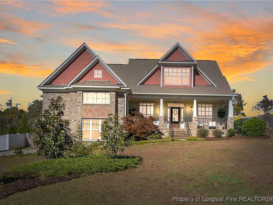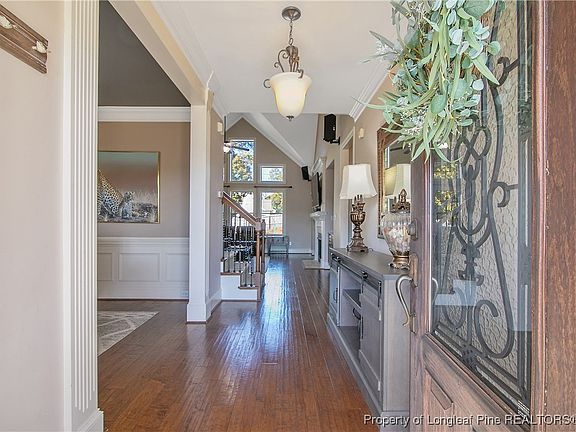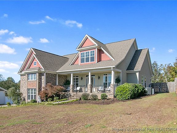 WELCOME TO THIS STUNNING EXECUTIVE HOME CRAFTED BY WATERMARK HOMES. Perfectly situated in the Jack Britt school district. This exquisite 4BR, 3.5Bath combines elegance w/ thoughtful functionality. Enter to find engineered laminate hardwood flooring, intricate trims and moldings that elevate the living spaces. The open great room boast multi-tiered vaulted ceilings & an abundance of windows designed to flood the space with natural light. The main level showcases a luxurious master suite, while the upper level includes 3BR, 2 of which are connected by Jack & Jill bathroom. The gourmet kitchen is a chef’s delight, featuring a spacious island with granite countertops. An unfinished flex space in one of the bedrooms. Step outside to a screened porch leading to a sparkling inground swimming pool and gazebo. New liner installed Nov 2024. The oversized front porch presents serene lake views. HVAC is approximately 2 years old.