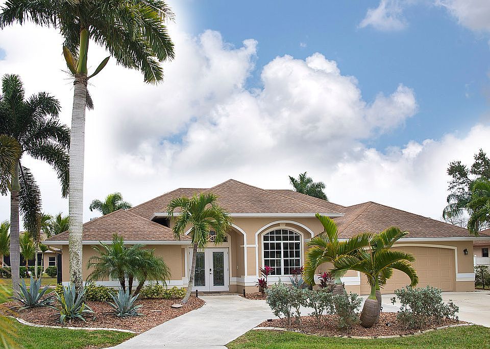 STUNNING 3 Bedroom, 2 Bathroom newly remodeled POOL HOME with attached 2 Car Garage. Located in a cul-de-sac in the quiet deed restricted community of BURNT STORE MEADOWS yet close to all amenities. This light and bright home offers gorgeous design features throughout. There is an open and split bedroom floor plan with Great Room, Dining Room, well appointed Kitchen, Inside Laundry. The spacious Great Room offers a cathedral ceiling, large glazed floor tiles and alcoves to display your collectibles. The Dining Room at the front of the house has a large window that brings much natural light. The impressive Kitchen opens to the Great Room and features Wolf and Sub Zero appliances, dining area, gorgeous stone countertops and large island with cooktop, sink, lots of storage and breakfast bar. The Master Bedroom suite has lanai access, vaulted ceiling, TWO large walk in closets and private bathroom with dual vessel sinks, vanity area to put on your make up, garden tub and walk in shower. There are two guest rooms, one with lanai access, and they both have walk in closets with custom closet organizers. The guest bathroom has a large walk in shower and vessel sink. Your living space extends via pocket sliding glass doors to the screened lanai and pool area. There is a paver deck, inground heated pool, inground heated spa, large covered lanai and plenty of deck for sunbathing,and outdoor Kitchen with grill, hood, refrigerator, sink, storage, granite counters and wood cabinets. Other features include double door entry with transom window, vaulted ceilings, crown molding, circular driveway, A/C 2 years old. **BRAND NEW FIBERGLASS SHINGLE ROOF AUG 2022 **Minutes from historic downtown Punta Gorda shopping, dining, medical care, waterfront parks, boat ramps, fishing piers, walking and biking paths, weekend farmers markets, art galleries, Fishermen's Village, events and more. This home offers the Florida lifestyle at its finest!