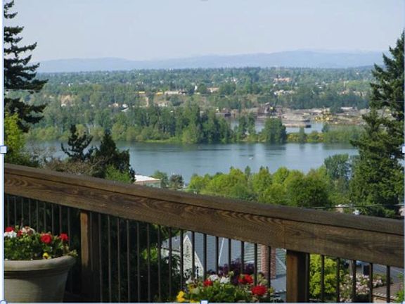 Stunning views of Mt. Hood from a beautiful deck overlooking the Willamette River. Charming two-story home with two bedrooms, one bath on the first floor, remodeled kitchen, living room, and dining area that has access to the deck for outdoor dining. The lower level has one bedroom and bath plus huge bonus room, both with their own entrances. 2-car garage, large laundry room with washer/dryer, plus storage room. Backyard has leveled area for children to play or just to relax. Walking distance to restaurants, shopping, coffee, bike path and Willamette Park on the river. Close to Zupan's and Fred Meyer grocery stores. Owner pays for garbage.