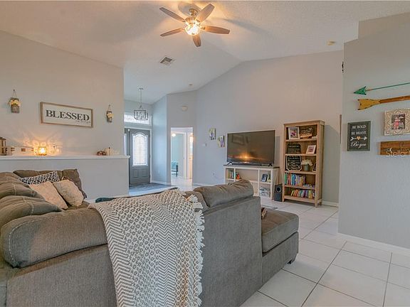 Looking for a home with a rear view of water under $200K? Be welcomed home to this wonderful property situated on a large corner lot before someone else has the daily opportunity to enjoy it. As you enter the home from its double doors you are greeted by vaulted ceilings & an airy feel. The home features an open floor plan with 2 spare bedrooms that share a full bath, an owners suite with additional closet space & an office, den or study to fit any lifestyle or hobby. The kitchen has a breakfast bar with a separate seating area and is conveniently located next to the kitchen & eatery. Garage enters into the kitchen for those grocery runs into the oversized closet pantry and has an exterior door for convenience to the side of the home. There is a large backyard patio for the weekends or to either prepare for your day or to unwind from it. The home has upgraded windows from previous owner, a roof that was replaced in 2014 & an AC that was installed 2018. Irrigation system is provided through reclaimed water for the neighborhood. Don't miss your chance on this one, it will not stick around long!