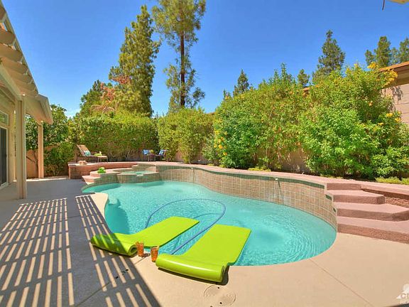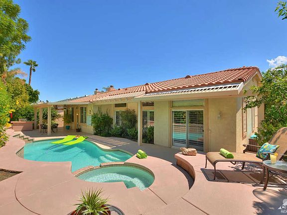 Welcome home to Sonata 2 in beautiful Palm Desert. This spacious, light and bright, 3 bedroom, 3 bath plus den home features dark wood-like floors throughout, plantation shutters, fireplace and custom paint. Your friends and family will be sure to enjoy the open floor plan with plenty of room for entertaining around the salt-water pool and spa. Enjoy grilling dinner under the covered patio and enjoying the sunsets or just relaxing with a good book. The generous sized master bedroom is on the opposite side of the home for privacy for you and your guests and features direct access to the spa. The front yard has been landscaped with drought-resistant desert landscaping. There is also a 3-car garage. This home is perfect as a family home due to the school district, a vacation home or a rental. No HOA dues! Centrally located, Sonata 2 is close to shopping, dining, world-class golf, tennis, hiking, biking and all that the desert has to offer.